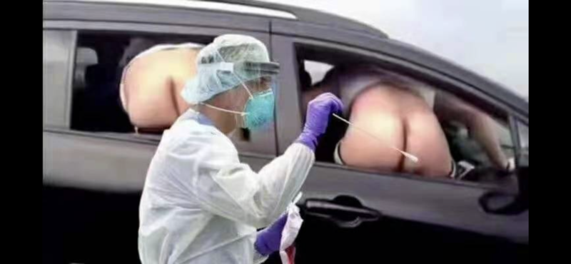 This guy is wearing a mask while people drive by and moon him. :rofl: